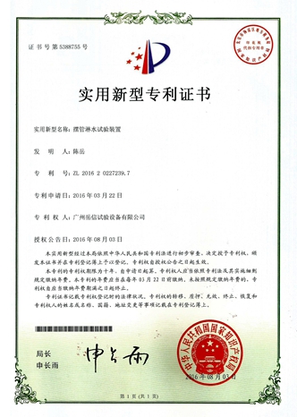 滴水試驗裝置-實用新型專利證書【岳信公司】 全自動噴水試驗箱-實用新型專利證書【岳信公司】